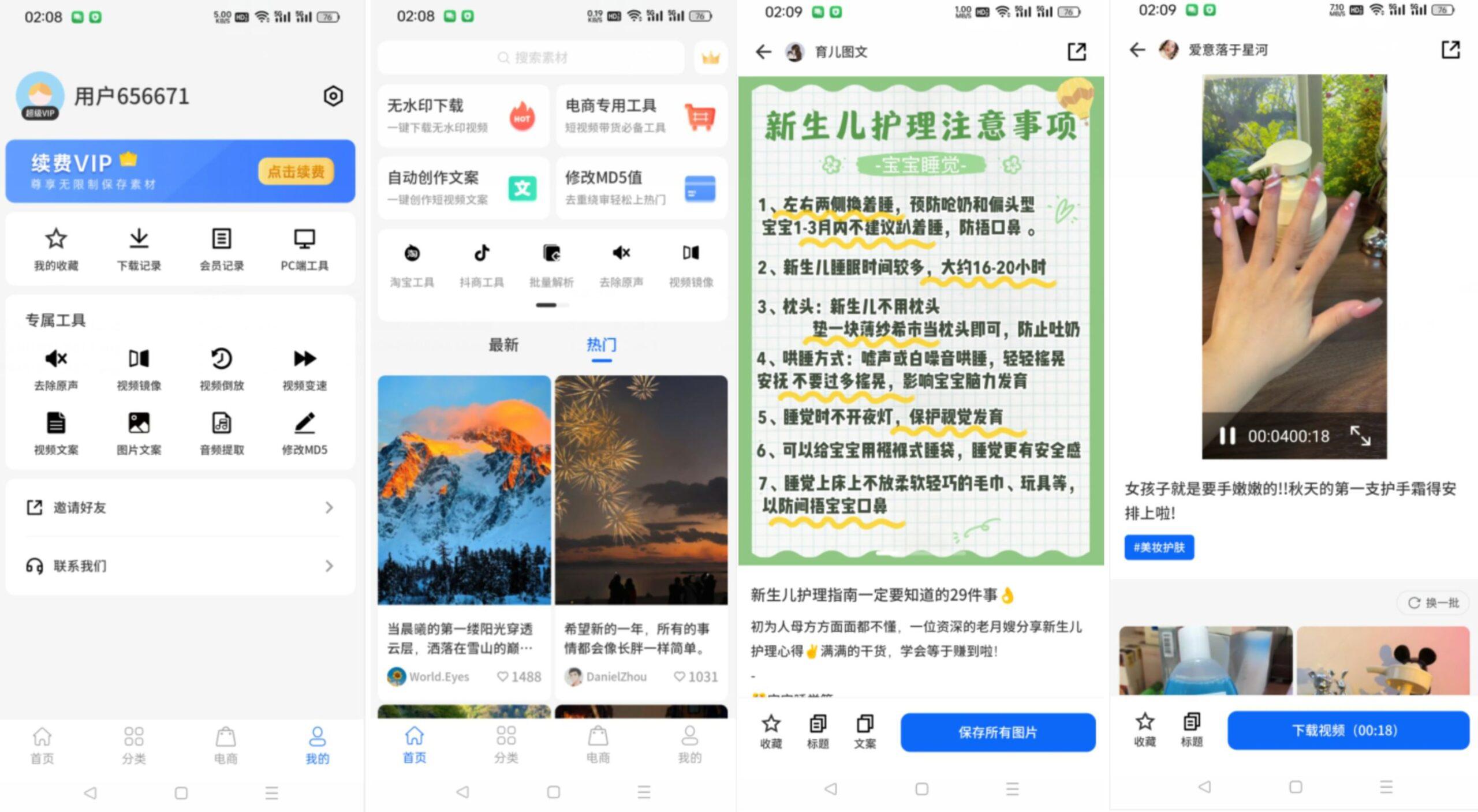 电商专用、创作文案、修改MD5值、去原声等功能和海量素材,需要的小伙伴值得体验。