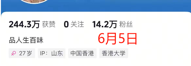 6月5日14万粉丝,6月6日涨粉2万到16万粉丝