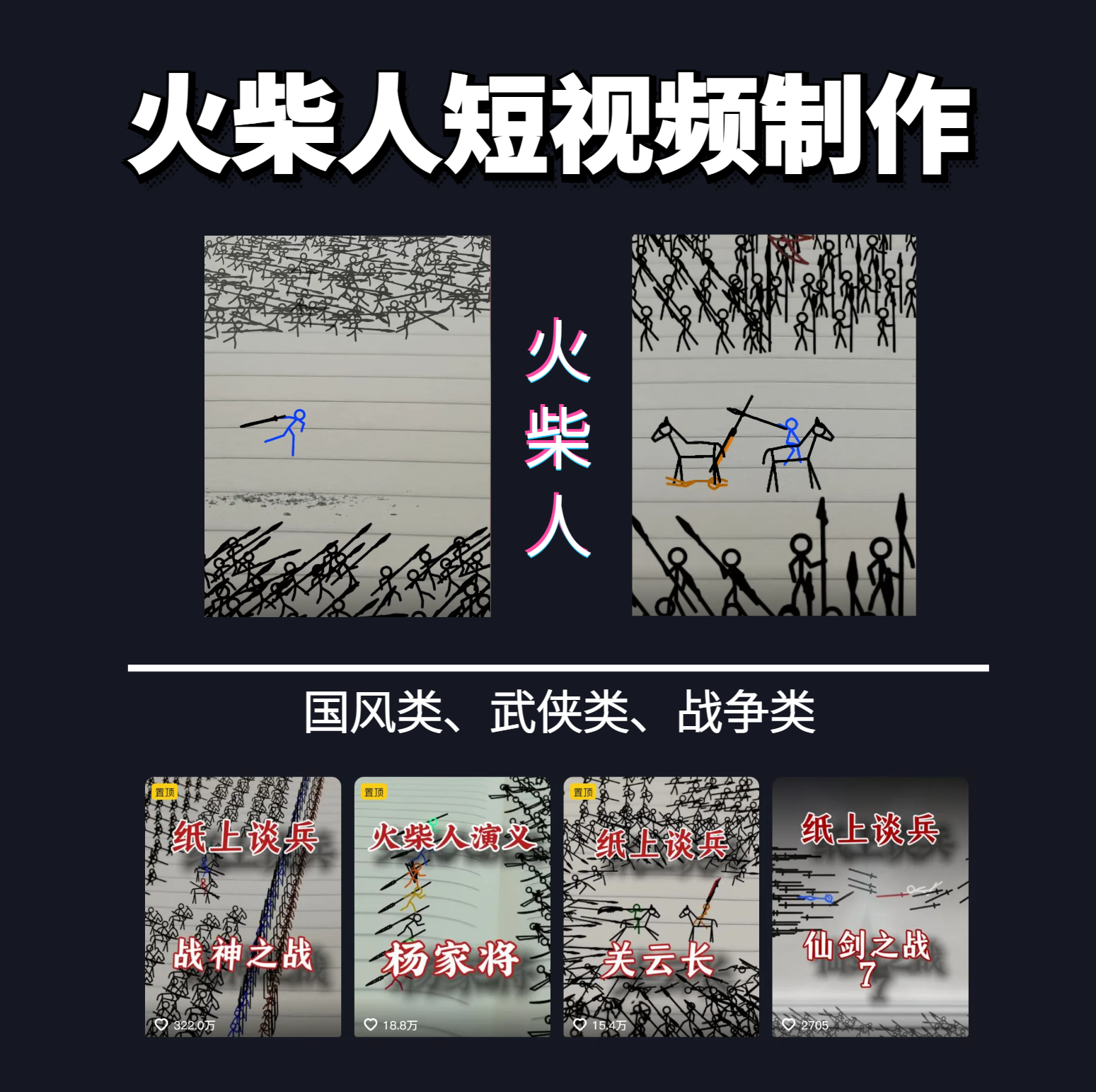 独一无二的视频展示风格,国风,战争动画,短视频差异化新赛道。