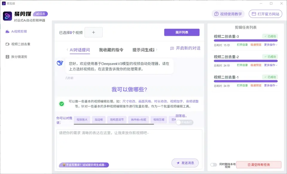 一款基于 DeepSeek DS-V3 视频模型 的 跨平台 AI 批量剪辑工具