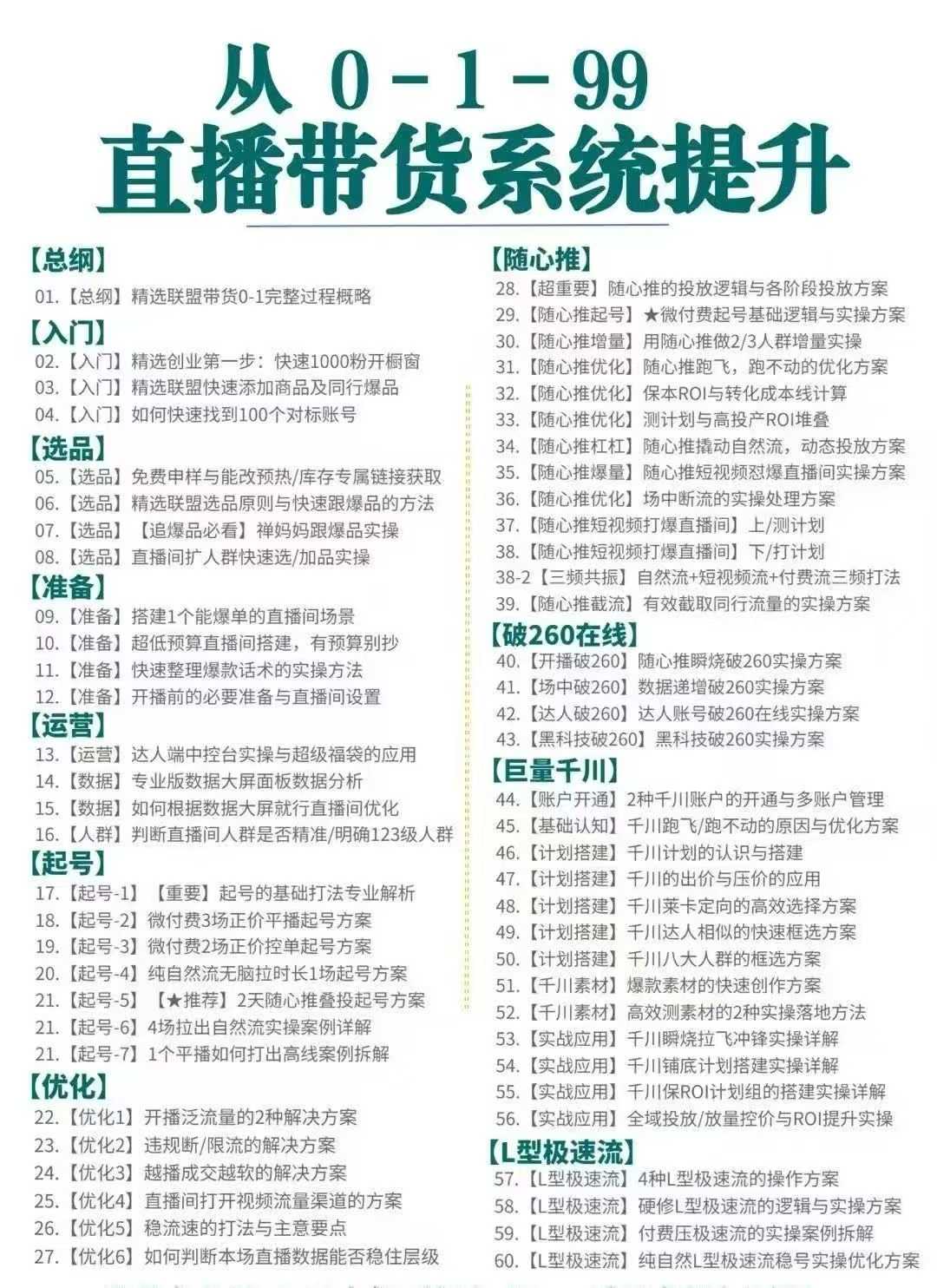 直播带货0~1~99系统实操课,自然流、微付费起号、千川、随心推等,直播带货全链路完整逻辑