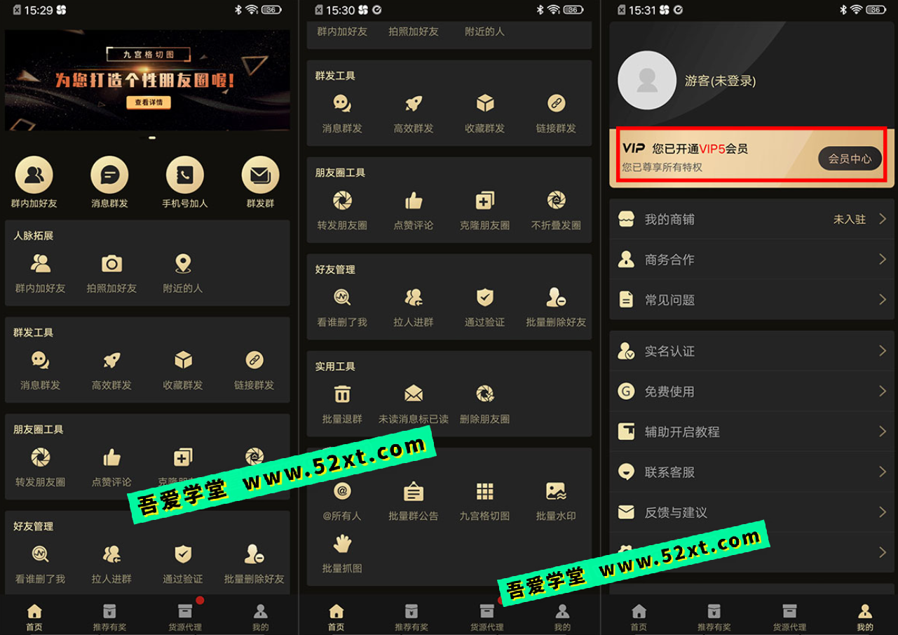 微商助手 是一款安卓手机端使用的 微商辅助软件。该软件可以辅助用户实现 微信群内自动加好友、消息群发、手机号加人、群发群,并且还提供了多个 群发功能,朋友圈辅助功能,好友管理功能等,全方位辅助微商加好友、加群、发消息,十分强大!