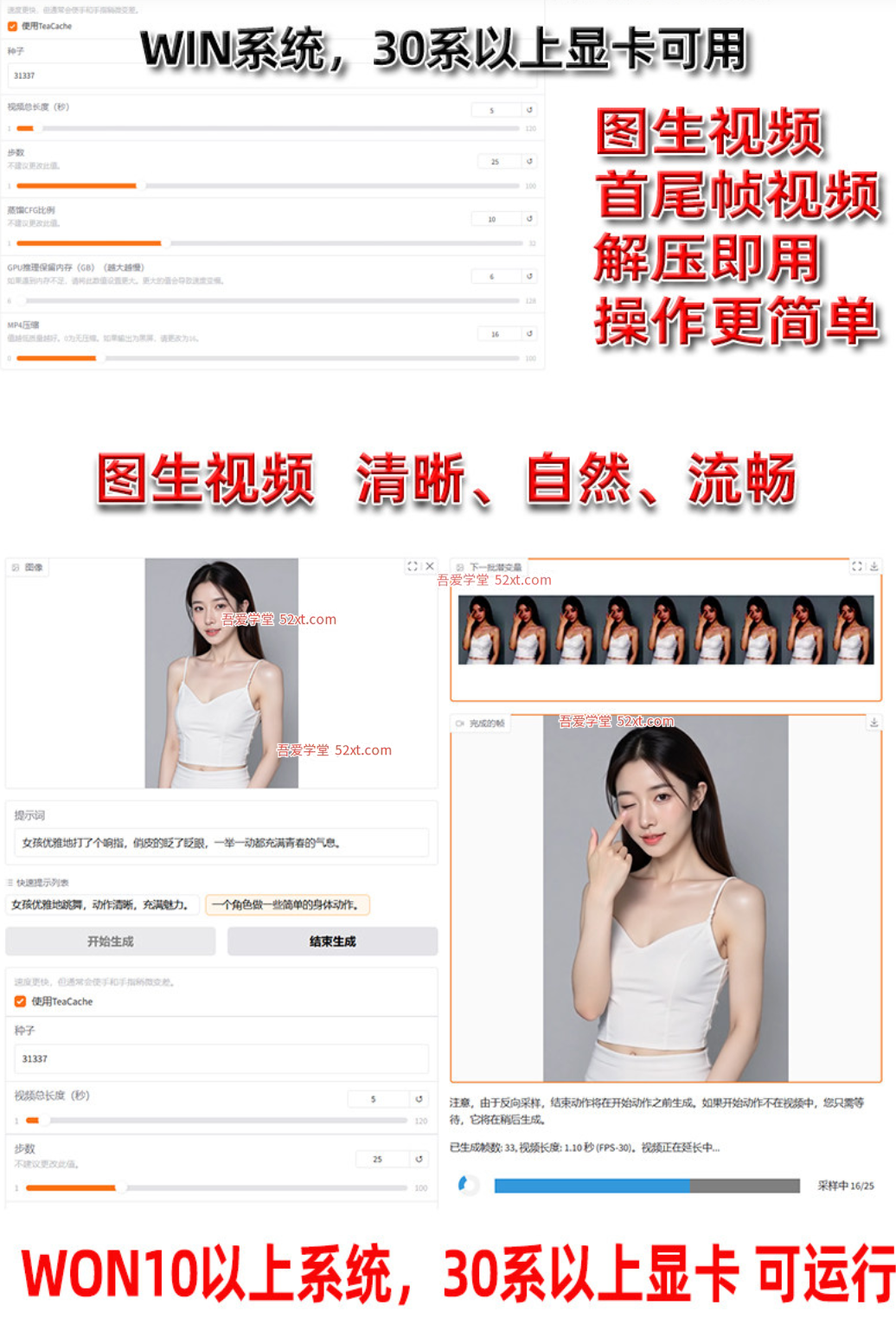 本地部署,支持首尾帧视频、批量生成、分辨率调节等!支持中文提示词,看支持长视频生成