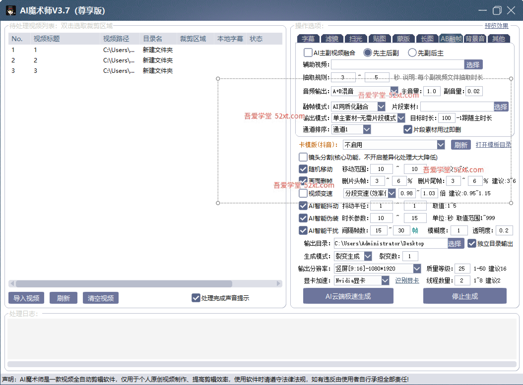 AI魔术师3.7版本尊享版,短视频搬运,一刀不剪原创