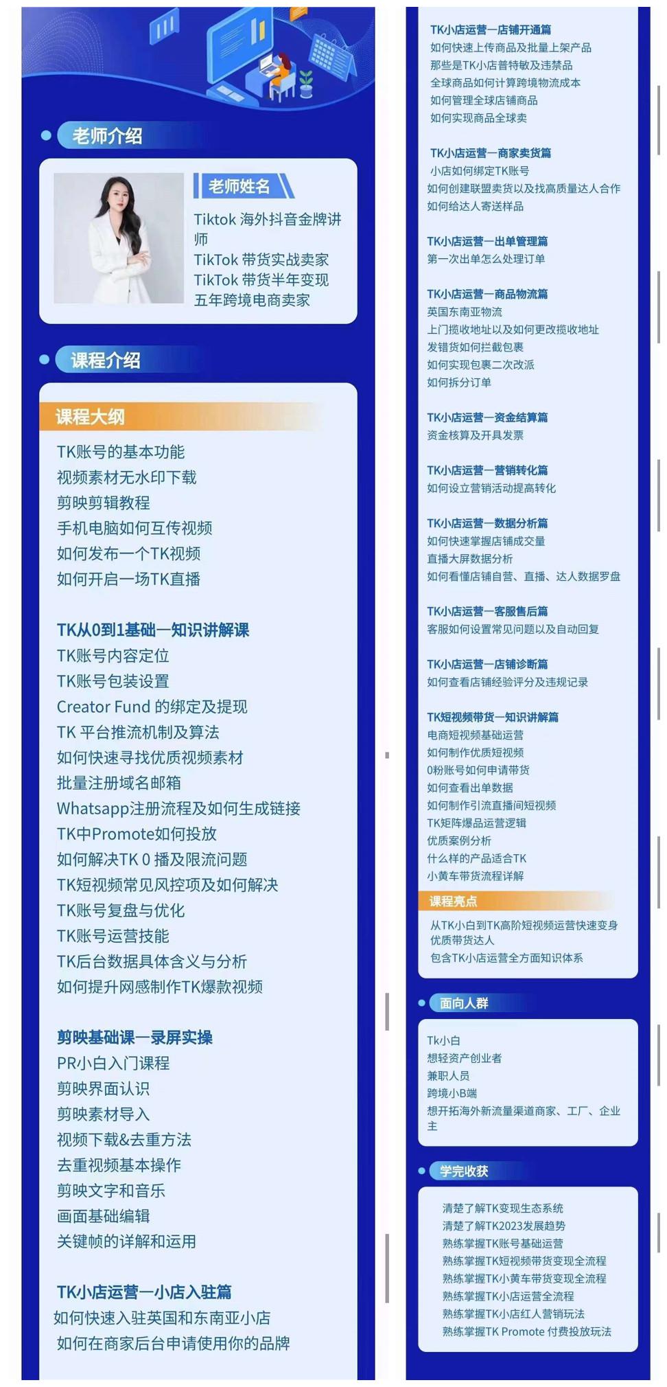 从TK小白到TK高阶短视频运营快速变身优质带货达人,包含TK小店运营全方面知识体系
